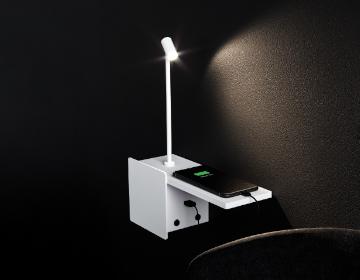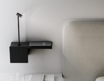 L'elettronica integrata nella mensola permette di ricaricare i dispositivi compatibili con la ricarica wireless.